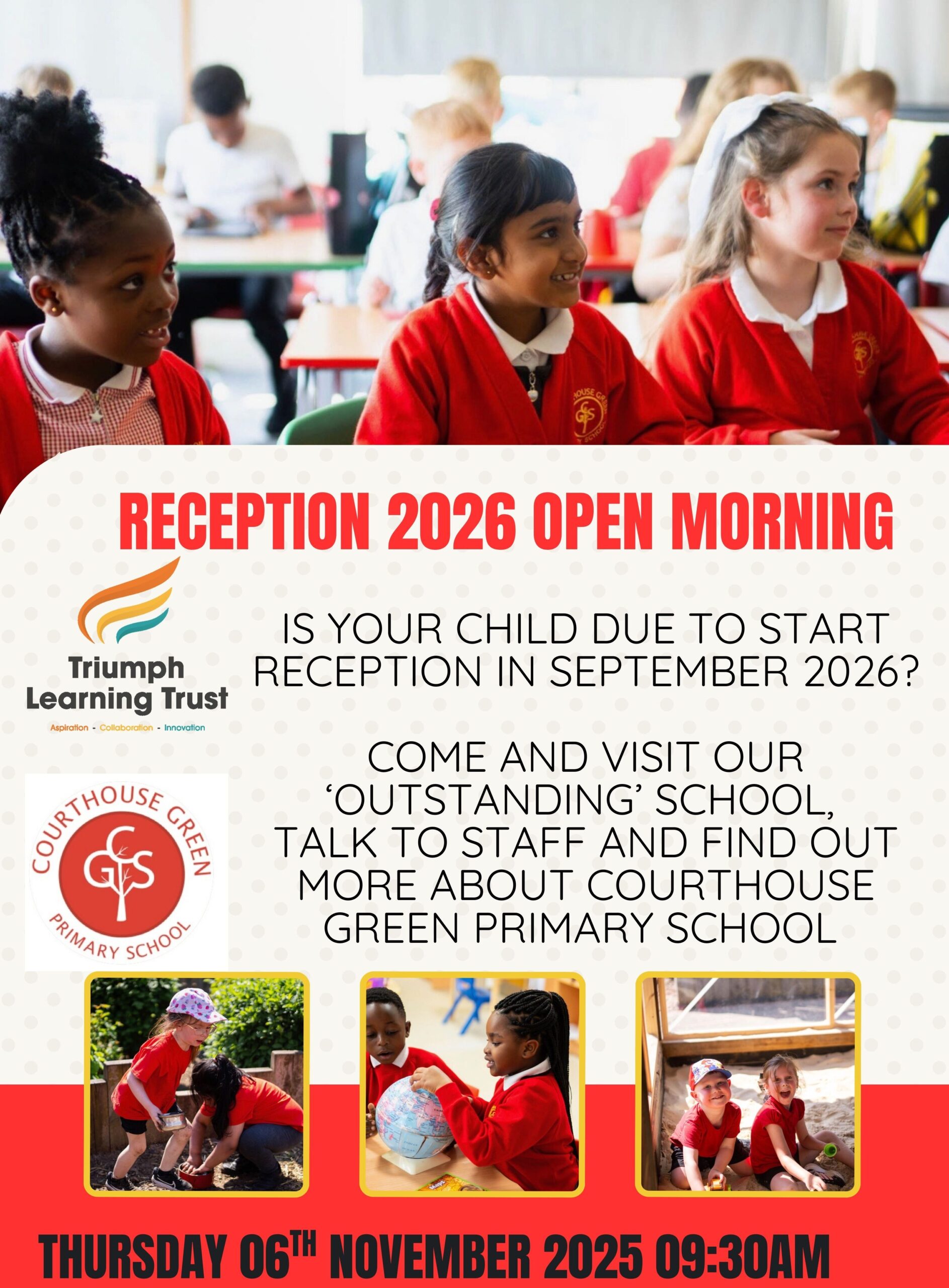 We hope our website gives you a sense of the warmth, ambition, and vibrant life of our school. Whether you’re a prospective parent, a visitor, or part of our current school family, we welcome you to explore further and see what makes Courthouse Green a special place to learn and grow.